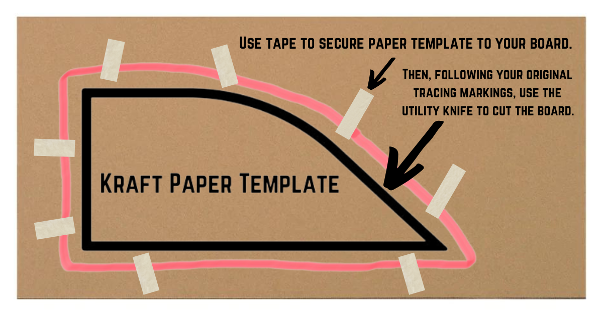 Using the kraft paper templates you measured in Step 1, you will now make rough cuts that can be transferred to the boards in the next step.