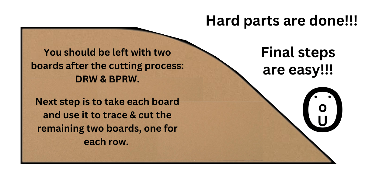 You should now be left with two nicely cut boards: DRW (driver's row window) & BPRW (back passenger row window).