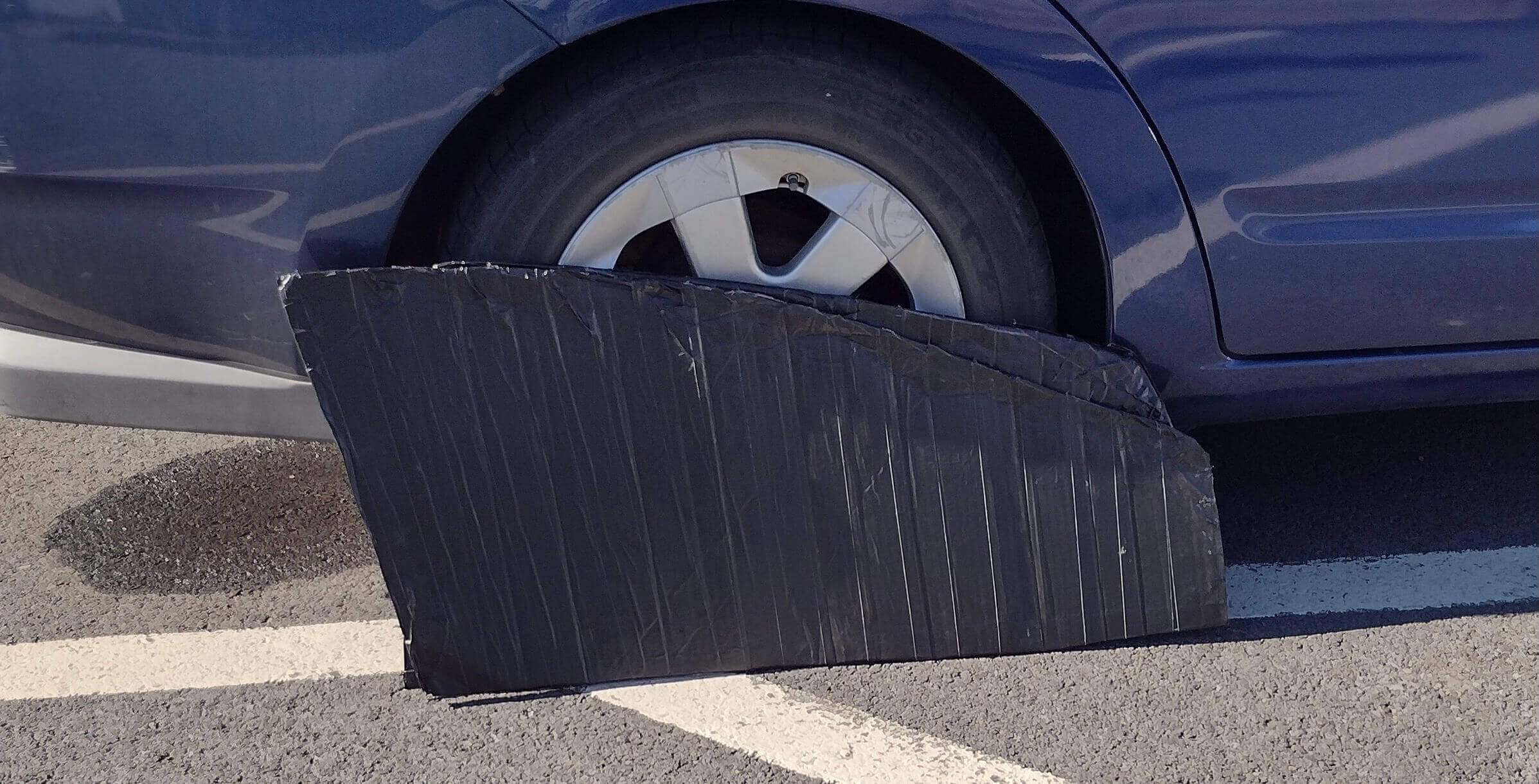 Cut a piece of kraft paper that's slightly larger in height & width than your car's driver's row window (either side). Make sure your windows are rolled up. Then, going around the entire window, tuck, push or wedge the kraft paper into the entire window frame, as the photo illustrates. *Be sure to cover the ENTIRE window fully with the kraft paper.