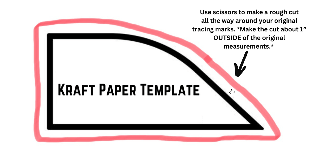 Once the paper is flattened and spread out, you will grab your scissors and make a rough cut that's about 1" OUTSIDE or your original tracing lines all the way around (see photo illustration above).