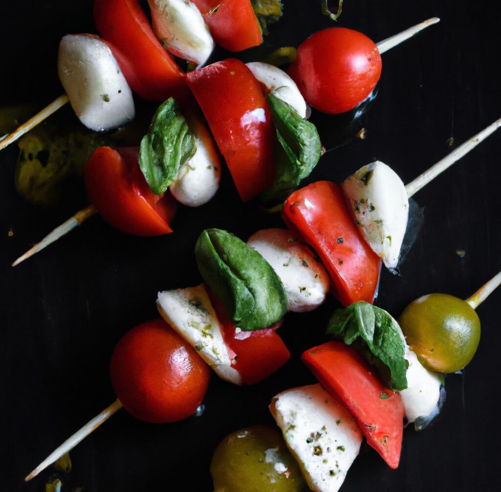 Thread cherry tomatoes, fresh mozzarella, and basil leaves onto skewers. Season to your liking for a scrumptious delight. (OPTIONAL) Add pieces of salami for a heartier meal.