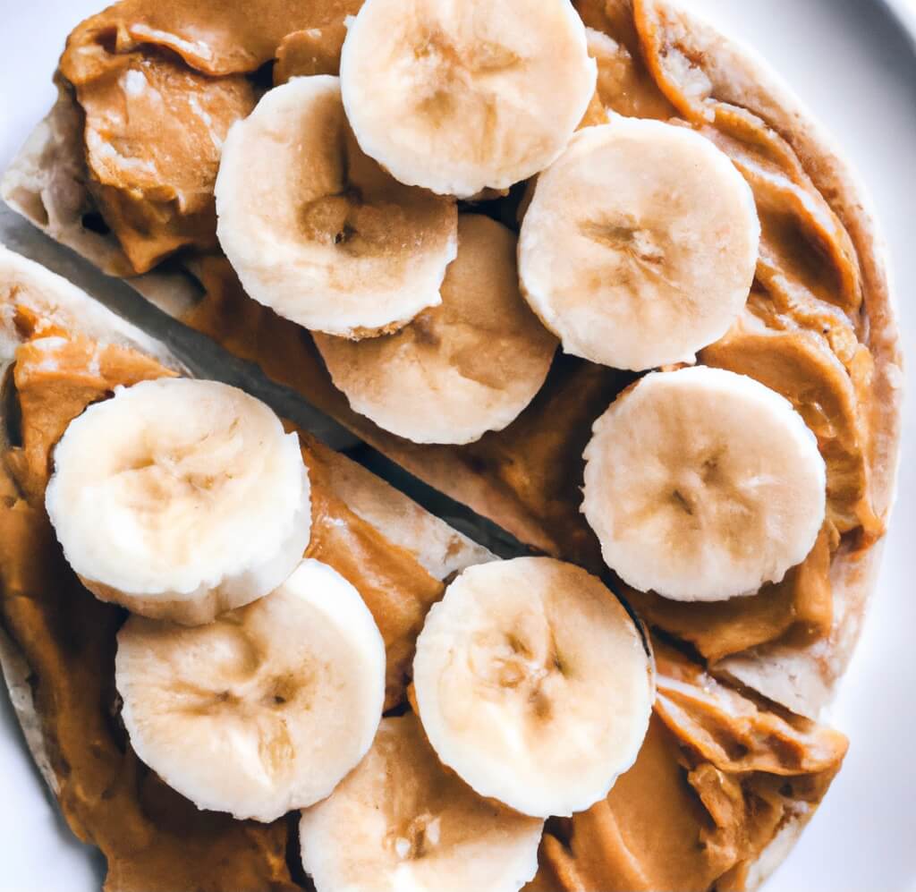 Spread peanut butter onto a tortilla, top with sliced banana, and roll up for a quick and satisfying snack or dessert. (OPTIONAL) Add some peach slices for extra flavor and juiciness.