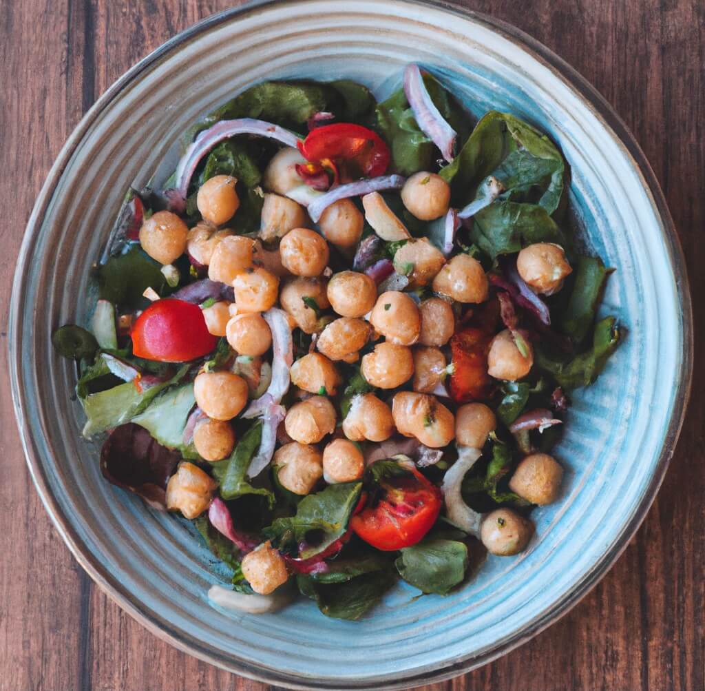 Toss together canned chickpeas, cherry tomatoes, cucumber, feta cheese, and a simple olive oil and lemon dressing for a tasty delight.
