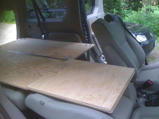Not all seats fold flush (flat). In most cases, a simple, inexpensive piece of plywood can be laid over the seats to create a solid, level sleeping platform.