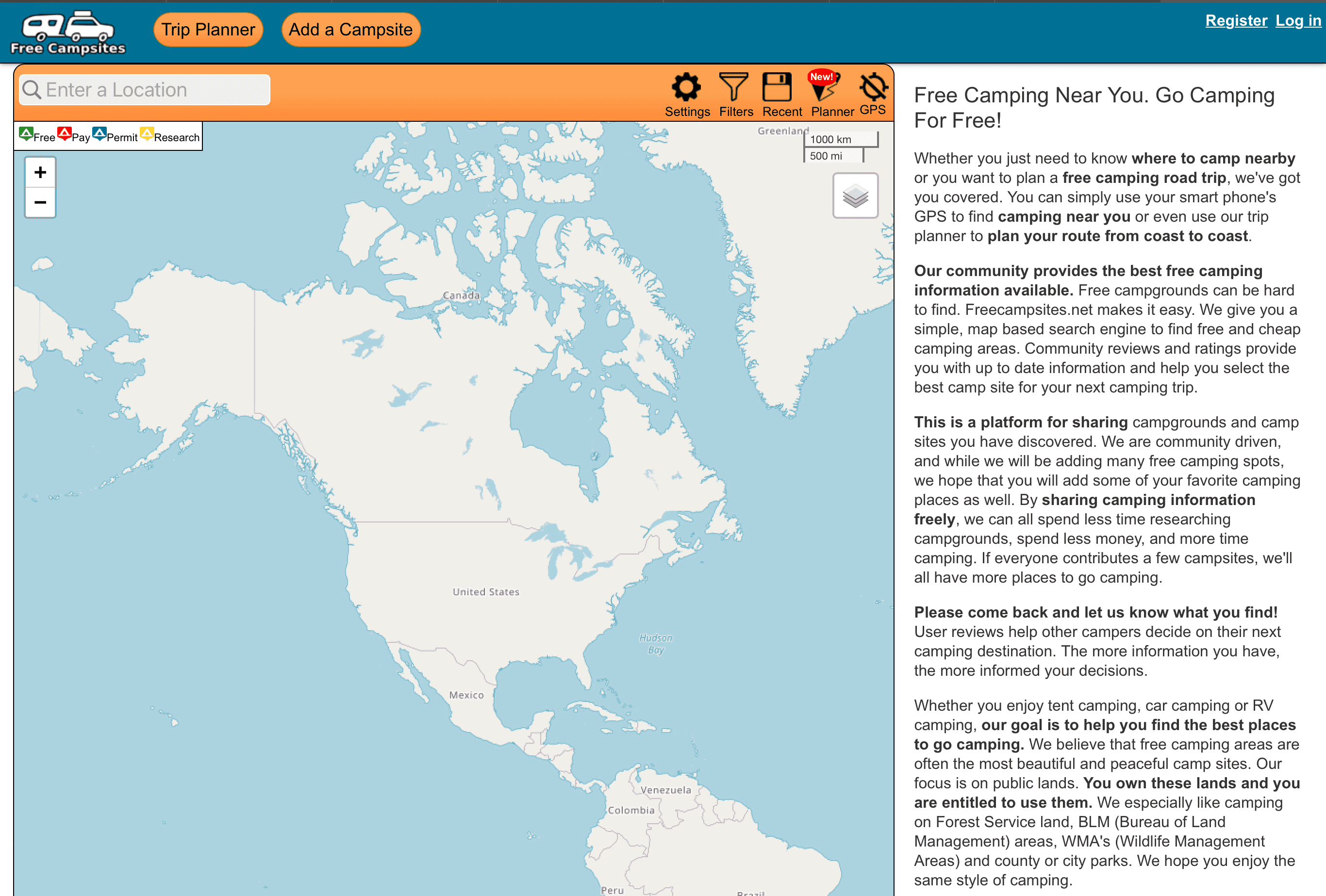 - FreeCampsites.net - Awesome website with tons of free stealth camping spots